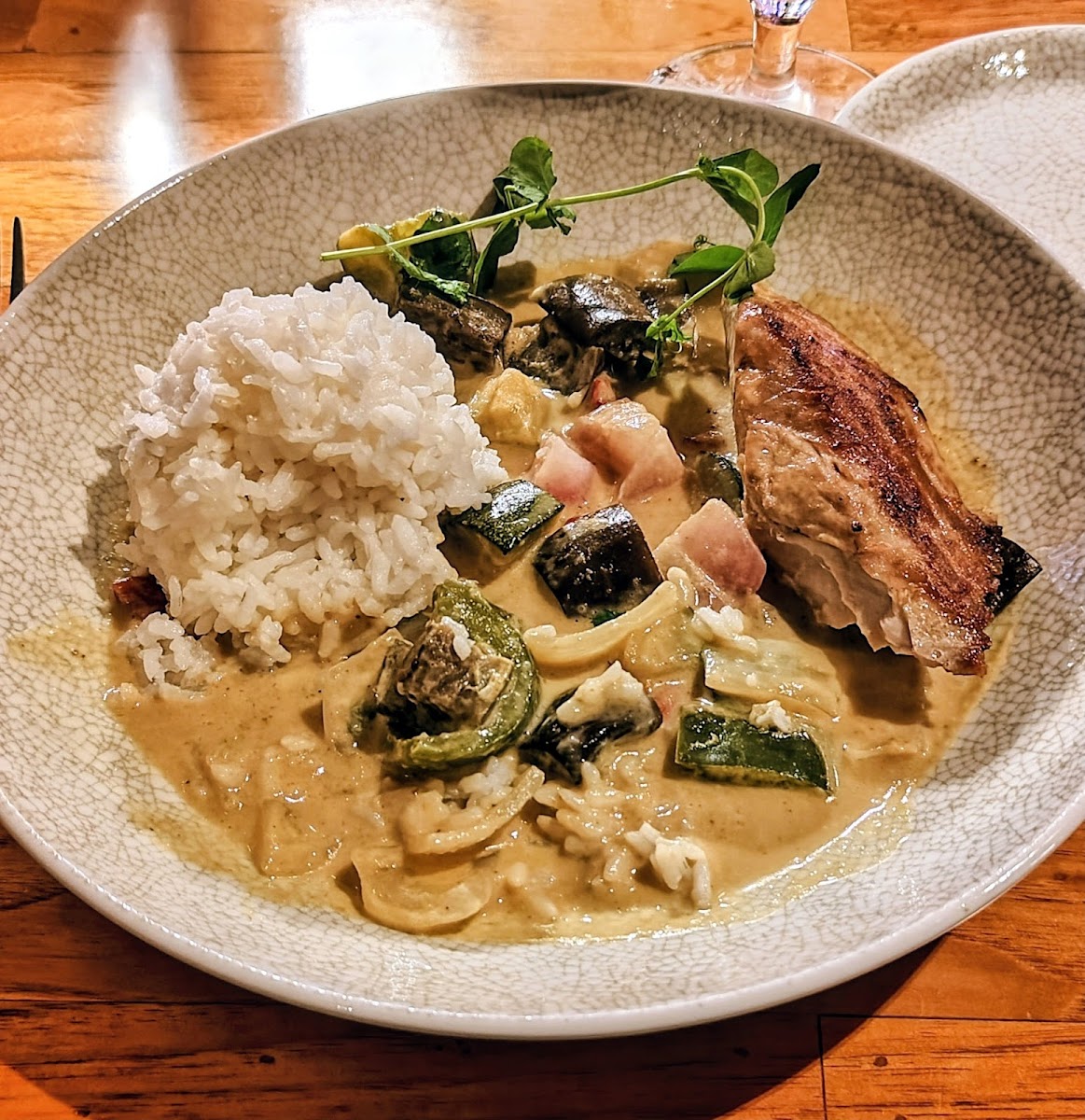 Evenings take on a different vibe — diners can settle in near small ponds filled with colorful fish, which lends a cozy, intimate feel to the experience. The staff strike a balance between attentive and low-key, allowing the food and atmosphere to take center stage. The menu features dishes that blend local Hawaiian flavors with broader influences, like coconut curry and slow-cooked Asian short ribs, offering hearty options for those who want to linger over dinner.