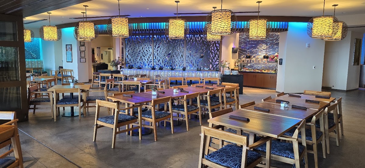 Mauka Makai sits within the Westin Nanea Ocean Villas in Lahaina and functions as a full-service breakfast and dinner restaurant that leans heavily on its island locale for atmosphere and views. The open-air dining setup means nearly every table overlooks ocean, pool, or lush hotel grounds, making it an appealing spot for those who appreciate a relaxed, tropical backdrop with their meal.